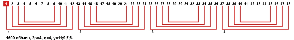 Схема укладки основной обмотки статора генератора EGN 40-LB/4.