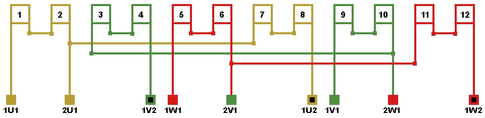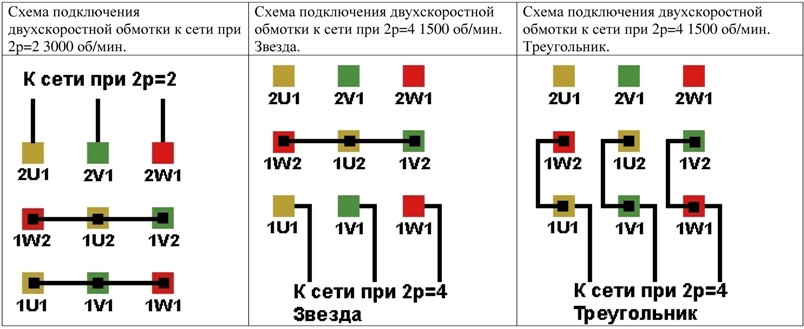 Схема подключения обмотки статора G160/4DG132MC-4/2 к сети.