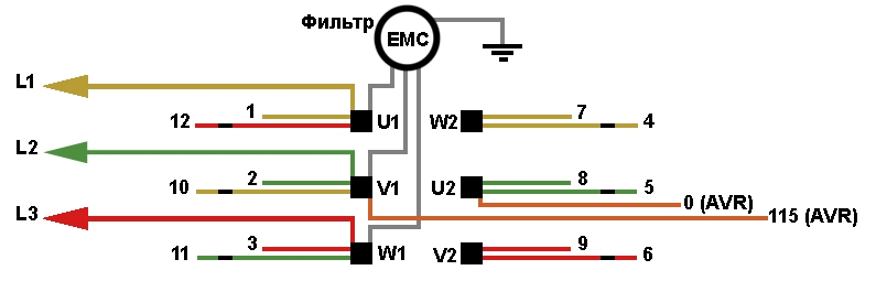 Схема соединений основной обмотки статора генератора JB4CA.