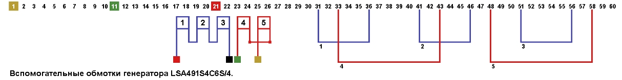 Схема укладки и соединений вспомогательных обмоток статора генератора LSA 49.1S4 C 6S/4.