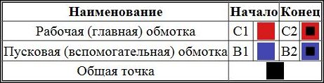 Обозначение выводов однофазных асинхронных электродвигателей.