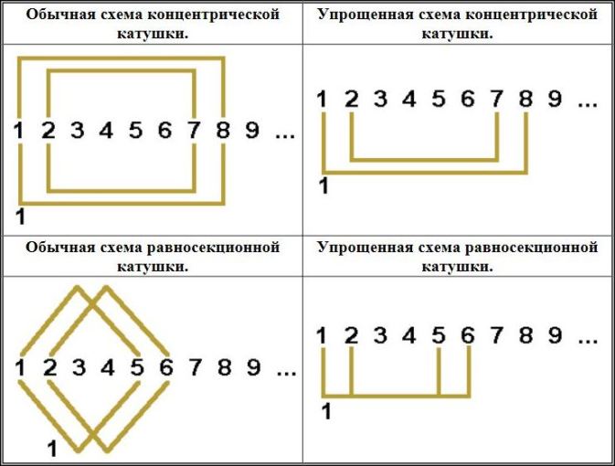 Изображения схем укладки обмотки в пазы.