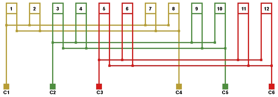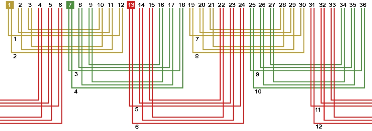 Рис. 8. Схема соединений обмотки, количество параллельных ветвей/секций а=2/2с.