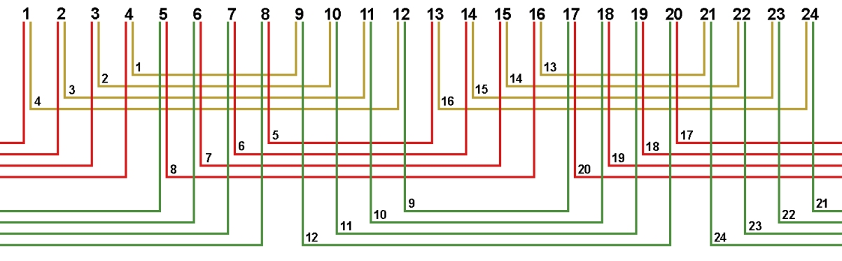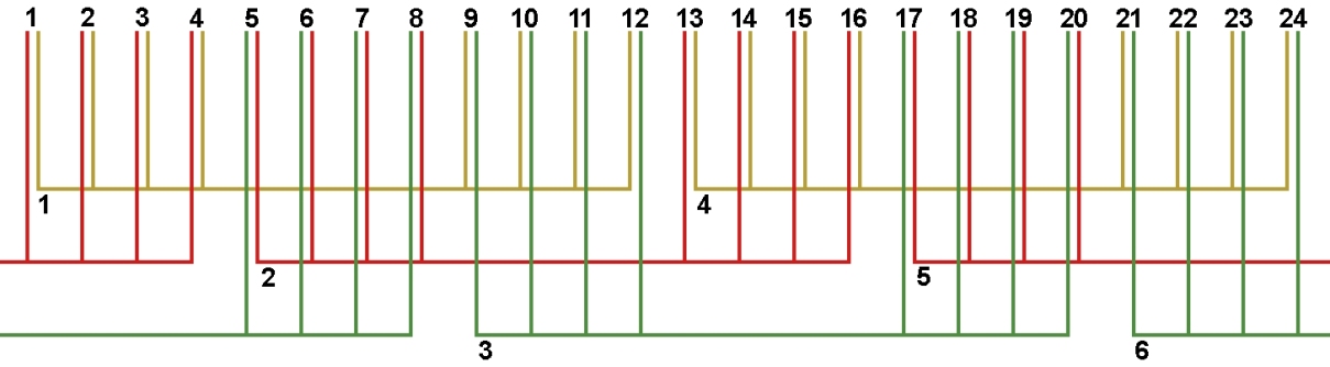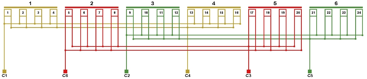 Рис. 10. Схема соединений обмотки, количество параллельных ветвей/секций а=2/4с.