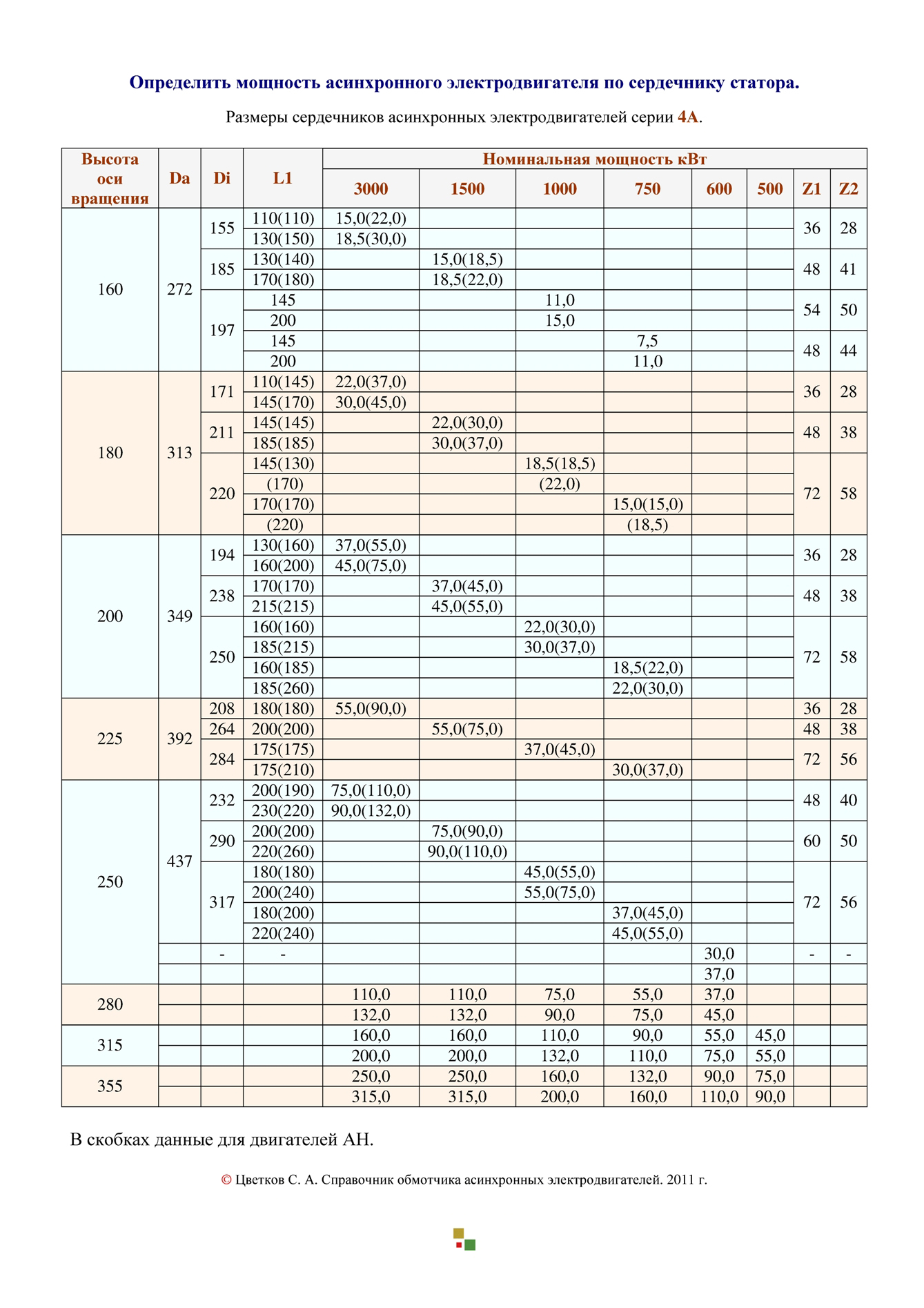 Как определить мощность и обороты асинхронного электродвигателя по статорной обмотке.