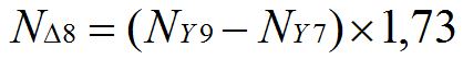 - Расчёт числа витков в секции совмещённой обмотки Δ с шагом у=8. NΔ8 - число витков в секции с шагом у=8 совмещённой обмотки. NY9 - число витков в секции с шагом у=9 основной обмотки. NY7 - число витков в секции с шагом у=7 основной обмотки.