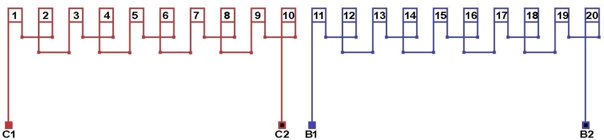 Схема соединений однофазной обмотки, количество параллельных ветвей а=1.
