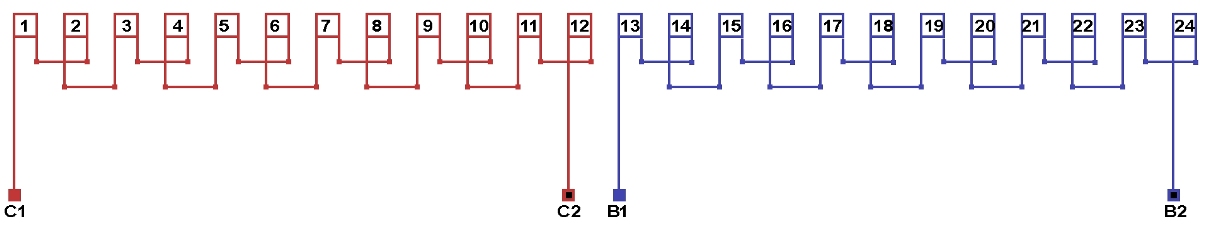 Схема соединений однофазной обмотки, количество параллельных ветвей а=1.