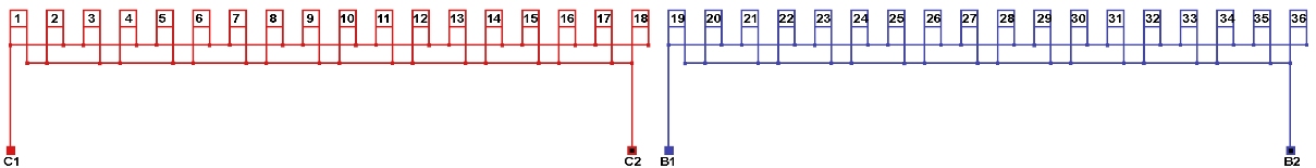 Схема соединений однофазной обмотки, количество параллельных ветвей а=18.