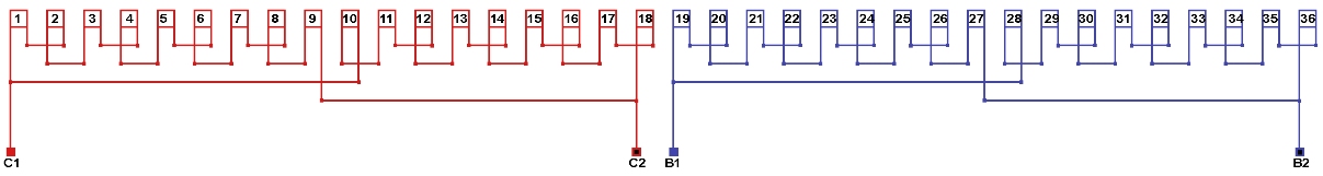 Схема соединений однофазной обмотки, количество параллельных ветвей а=2.