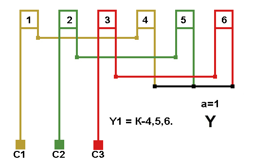 Схема соединений обмотки 1500 об/мин. в звезду, количество параллельных ветвей: а=1.