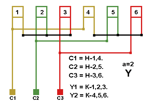 Схема соединений обмотки 1500 об/мин. в звезду, количество параллельных ветвей: а=2.