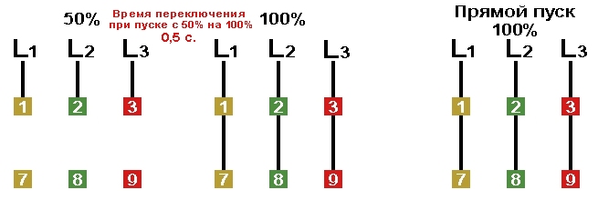 Пуск двигателя с соединениями Y/Δ.
