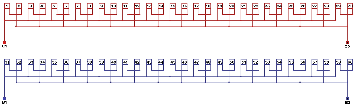 Схема соединений однофазной обмотки, количество параллельных ветвей а=15.