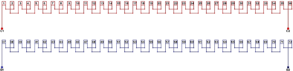 Схема соединений однофазной обмотки, количество параллельных ветвей а=1.