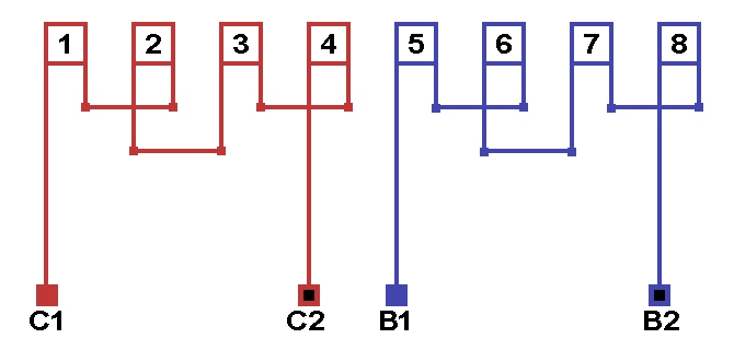 Схема соединений однофазной обмотки, количество параллельных ветвей а=1.