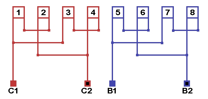 Схема соединений однофазной обмотки, количество параллельных ветвей: а=2.