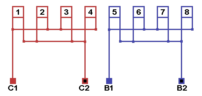 Схема соединений однофазной обмотки, количество параллельных ветвей а=4.