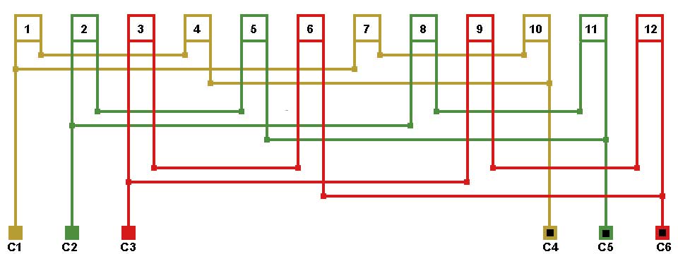 Схема соединений обмотки в звезду, количество параллельных ветвей а=2.