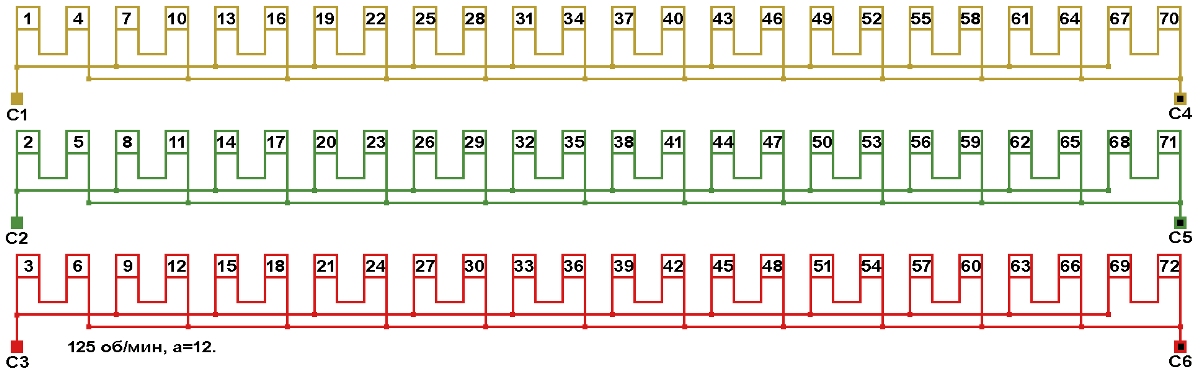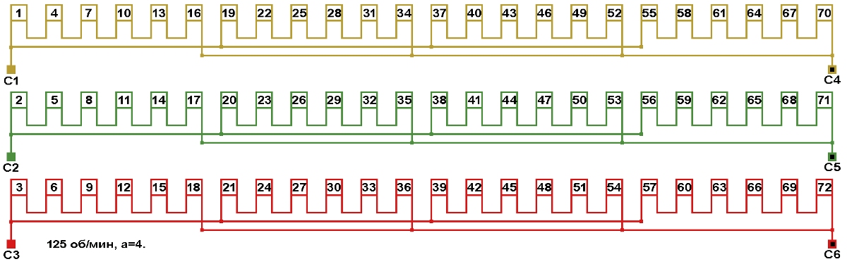 Схема соединений обмотки, количество параллельных ветвей а=12.