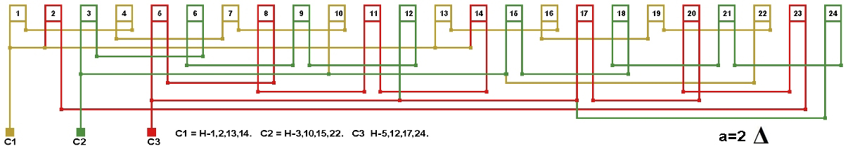 Схема соединений обмотки в треугольник, количество параллельных ветвей а=2.