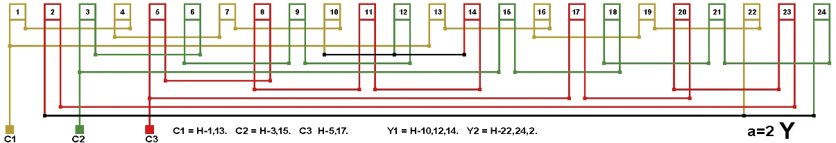 Схема соединений обмотки, количество параллельных ветвей а=2.
