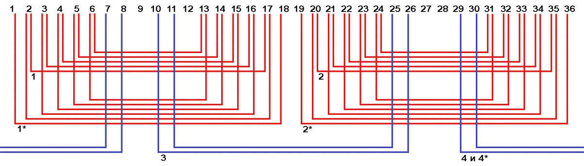 Схема соединений обмотки статора.