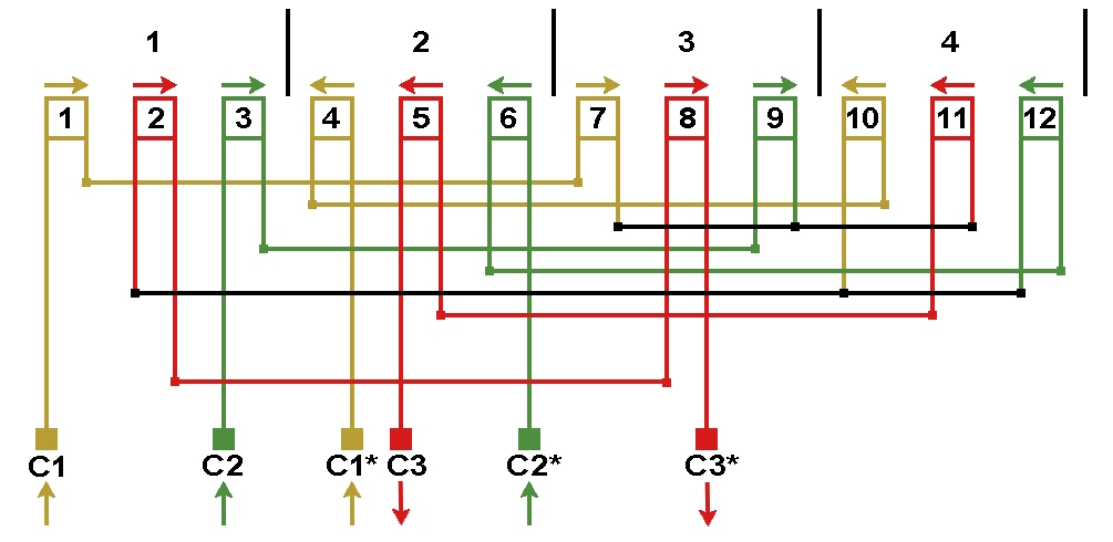Схема укладки обмотки статора морозильного компрессора 11 кВт.