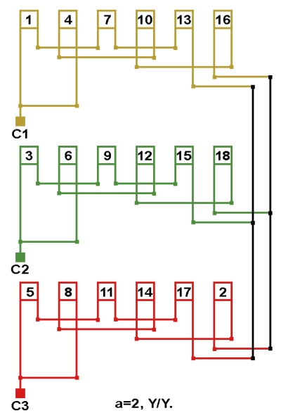 Схема соединений обмотки, количество параллельных ветвей а=2.