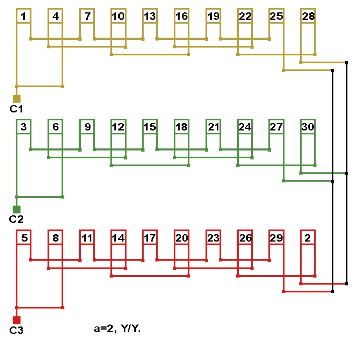 Схема соединений обмотки, количество параллельных ветвей а=2.