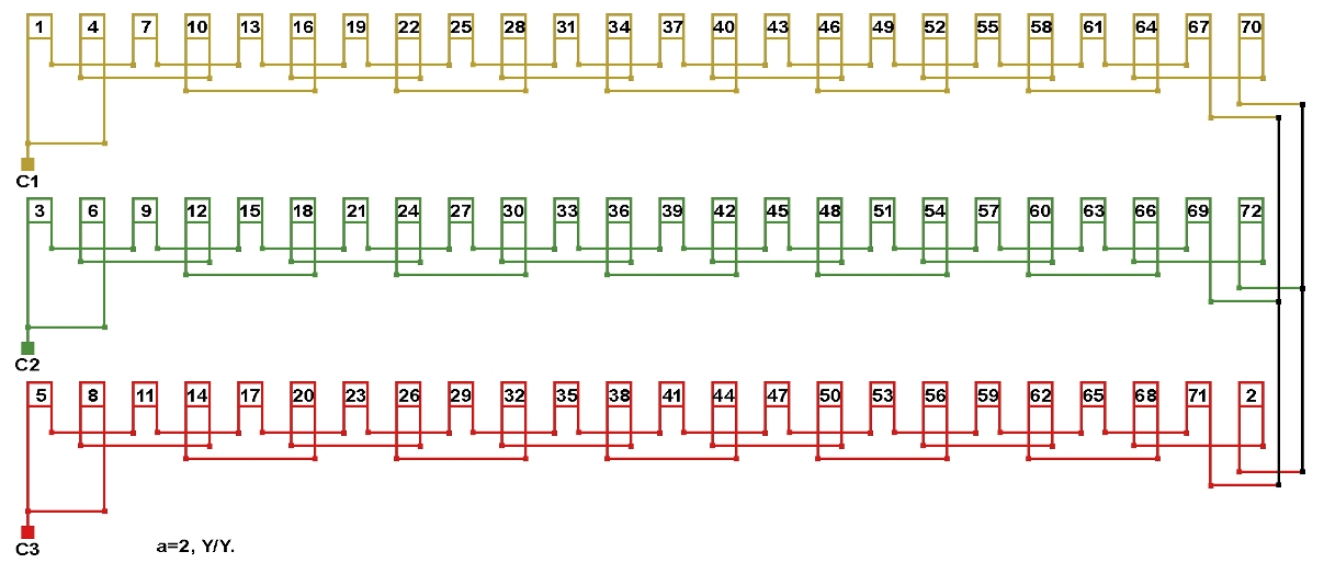Схема соединений обмотки, количество параллельных ветвей а=2.