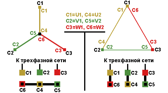 Соединение обмотки в звезду и треугольник.