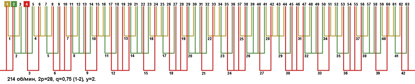 | Порядок чередования катушечных групп в периоде при дробном "q" | 1-2 | |